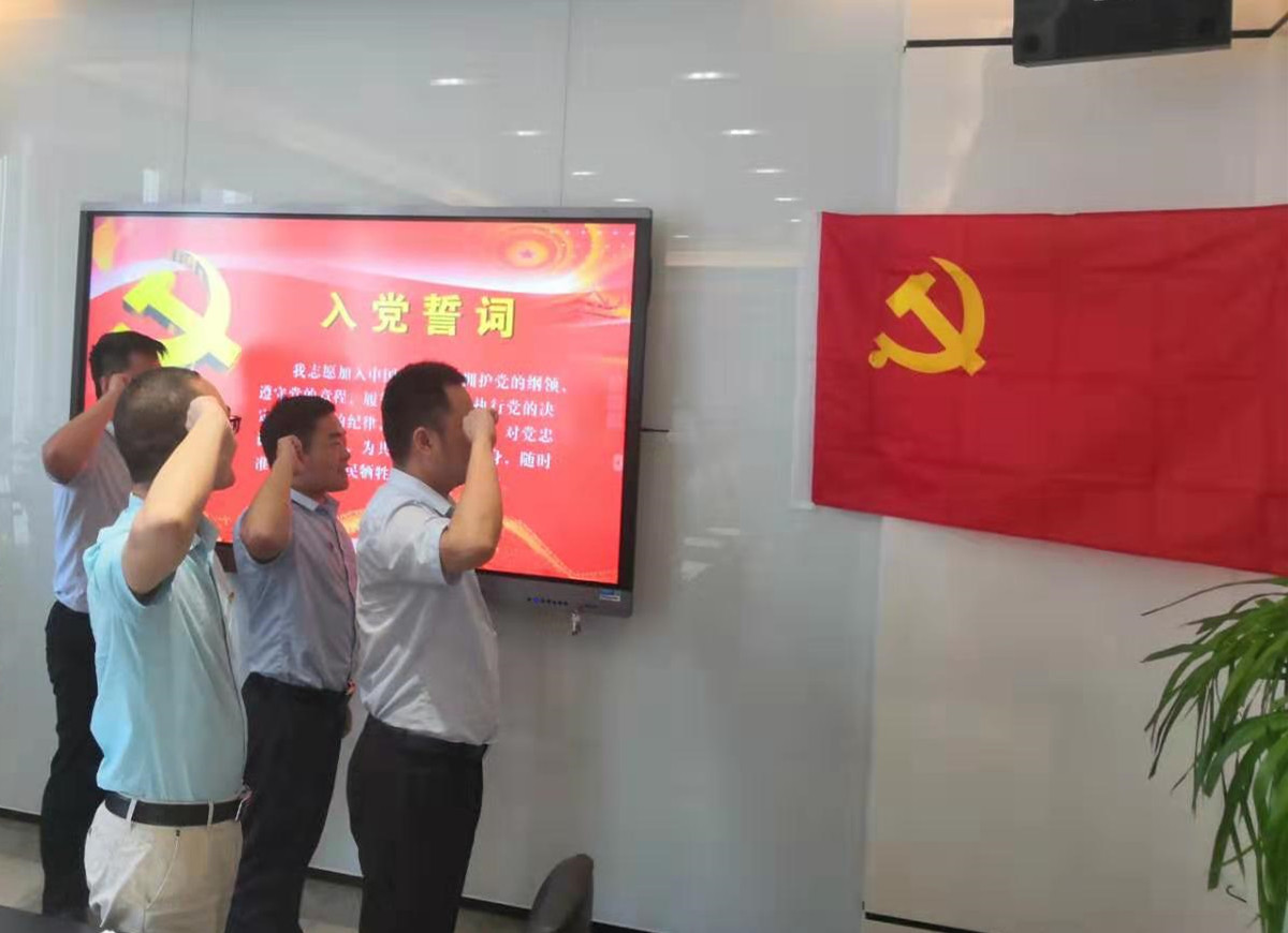 活动的第一项,由全体党员重温入党誓词。在张波同志的带领下,大家在党旗下庄严宣誓。铿锵有力的入党誓词表达了同志们对党的无限忠诚和热爱以及自己为实现中华民族伟大复兴的中国梦不断奋斗的决心。